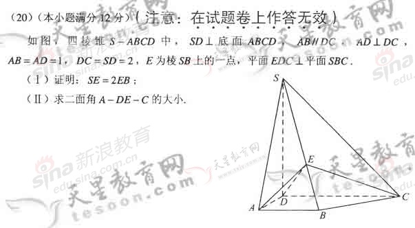2010年高考文科數(shù)學(xué)試題(全國卷I)(5)