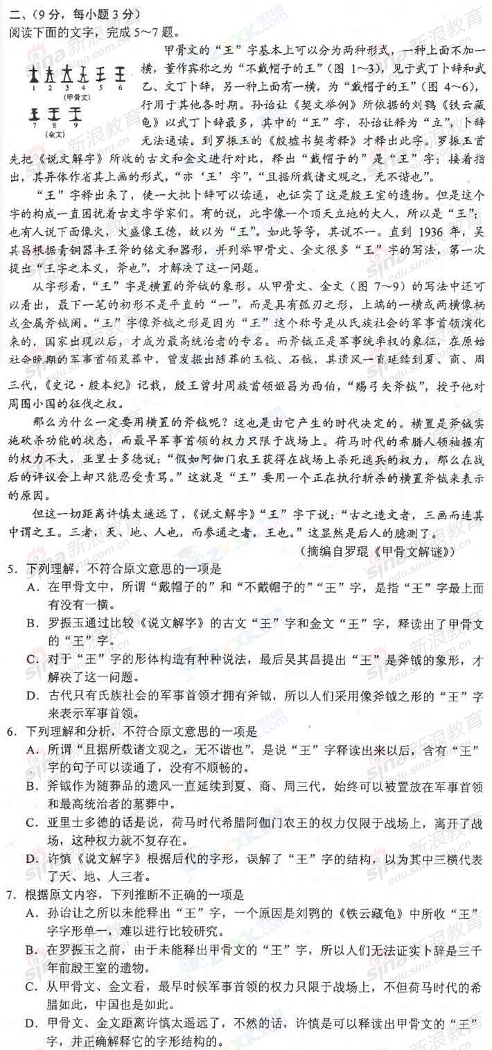 2009年高等學(xué)校全國(guó)統(tǒng)考語(yǔ)文試題(全國(guó)I卷)(3)