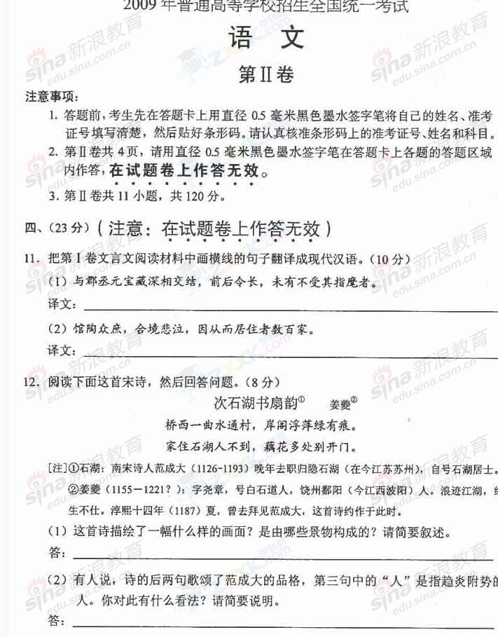 2009年高等學(xué)校全國統(tǒng)考語文試題(全國I卷)(5)