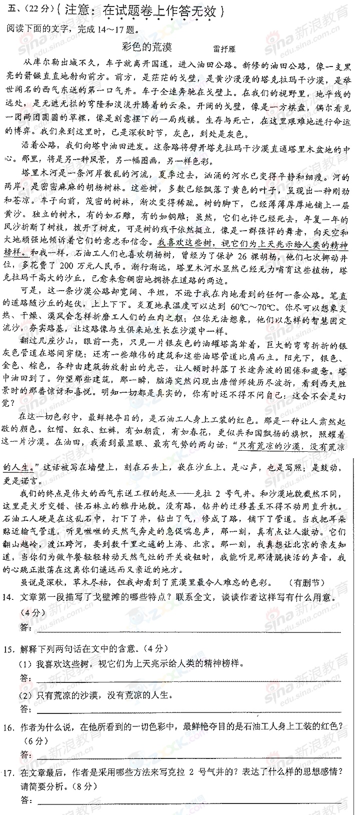 2009年高等學(xué)校全國統(tǒng)考語文試題(全國I卷)(6)