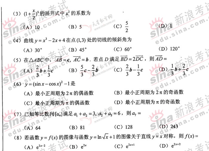 2008年高等學(xué)校全國(guó)統(tǒng)一考試數(shù)學(xué)文試題(全國(guó)I卷)(3)