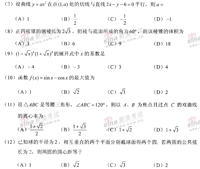 2008年高等學(xué)校全國(guó)統(tǒng)一考試數(shù)學(xué)文試題(全國(guó)II卷)(2)