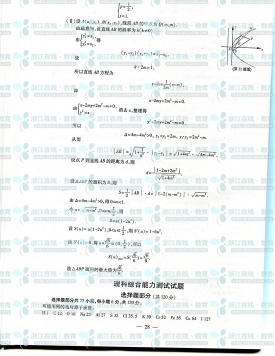 2012年浙江高考文科數(shù)學(xué)真題及答案公布(11)