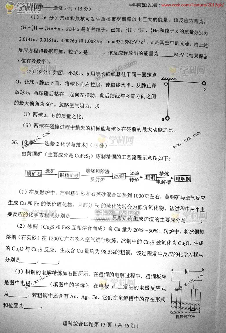 2012年遼寧高考理綜真題及答案(圖片版)(13)