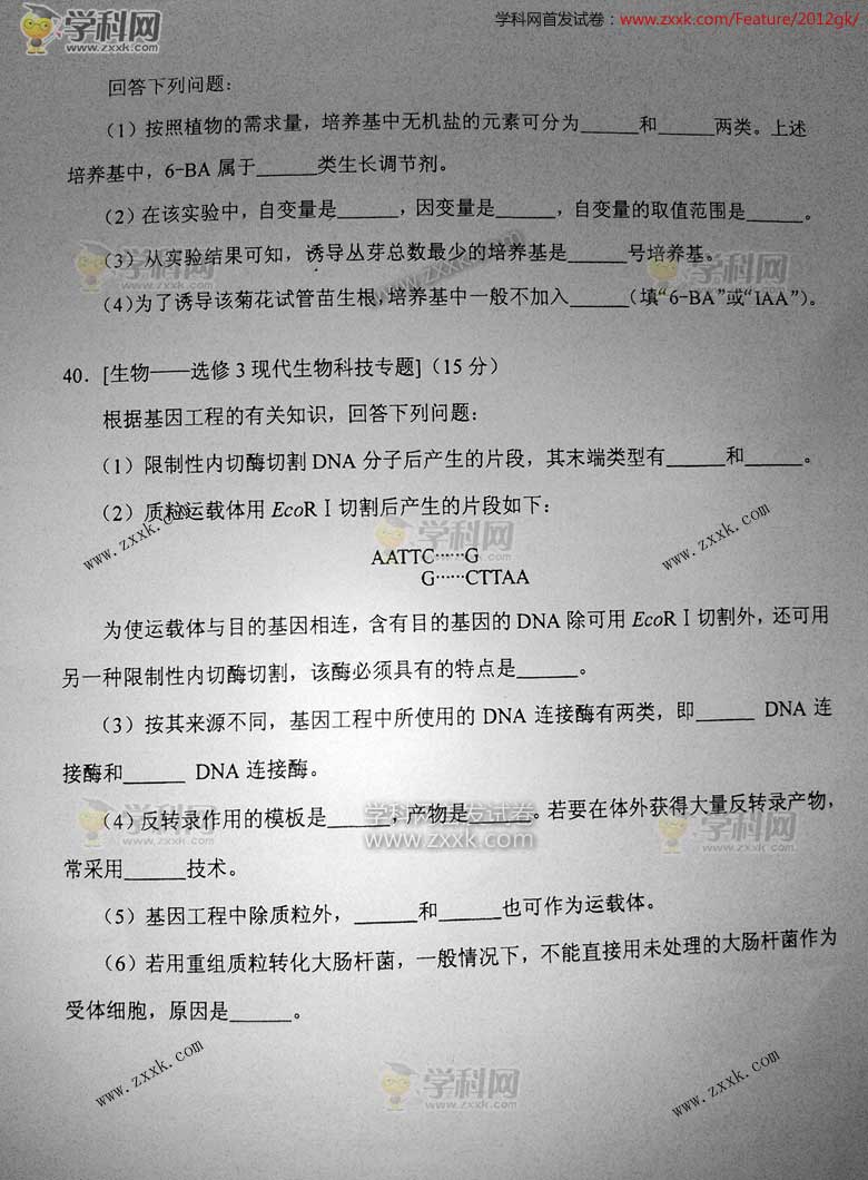 2012年遼寧高考理綜真題及答案(圖片版)(16)