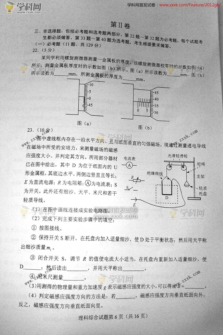 2012年遼寧高考理綜真題及答案(圖片版)(6)