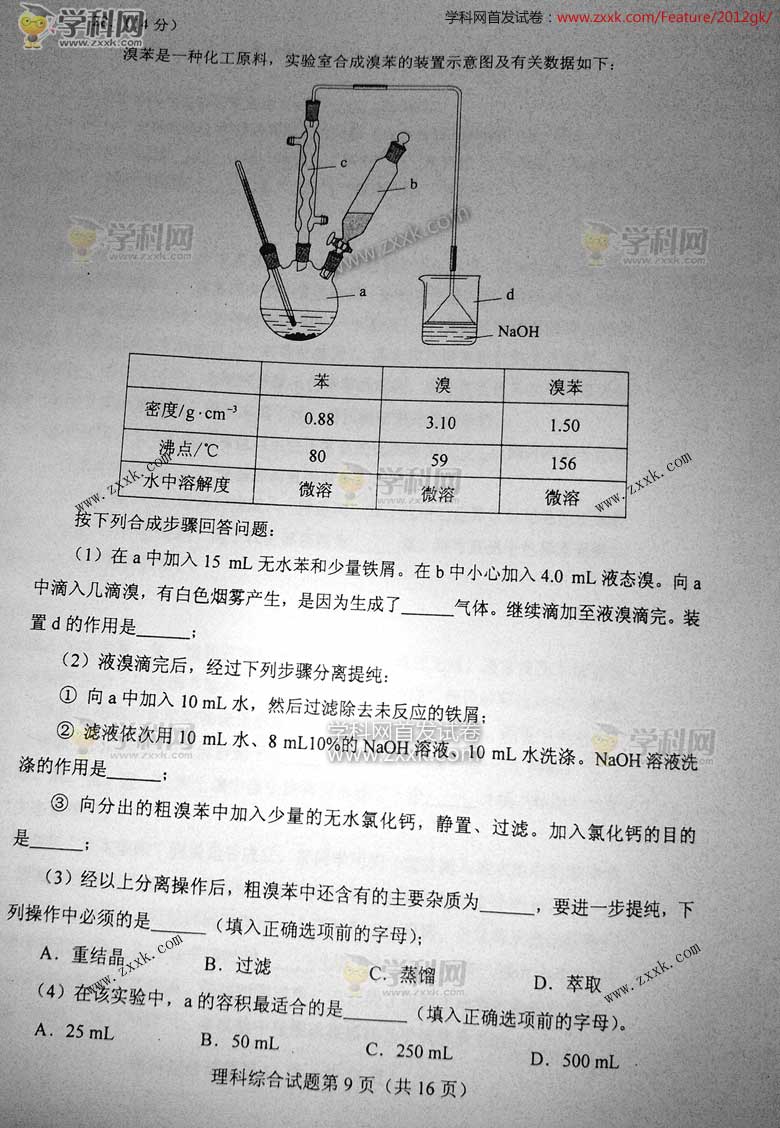 2012年遼寧高考理綜真題及答案(圖片版)(9)
