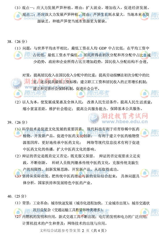 2012高考湖北卷B高考文綜真題及答案公布(18)