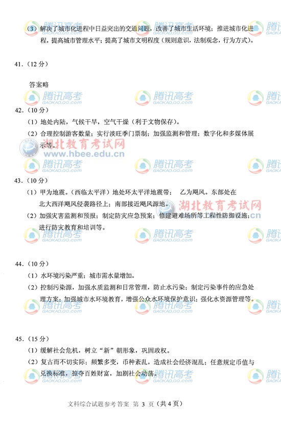 2012高考湖北卷B高考文綜真題及答案公布(19)