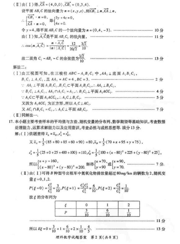 2013年福建省高考質(zhì)檢理數(shù)試卷及答案(2)