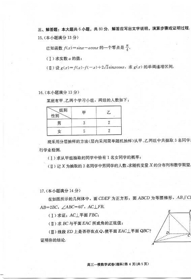 2013年西城一模(理科)數(shù)學(xué)試題及答案(4)