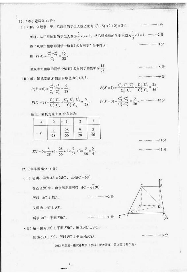 2013年西城一模(理科)數(shù)學(xué)試題及答案(7)