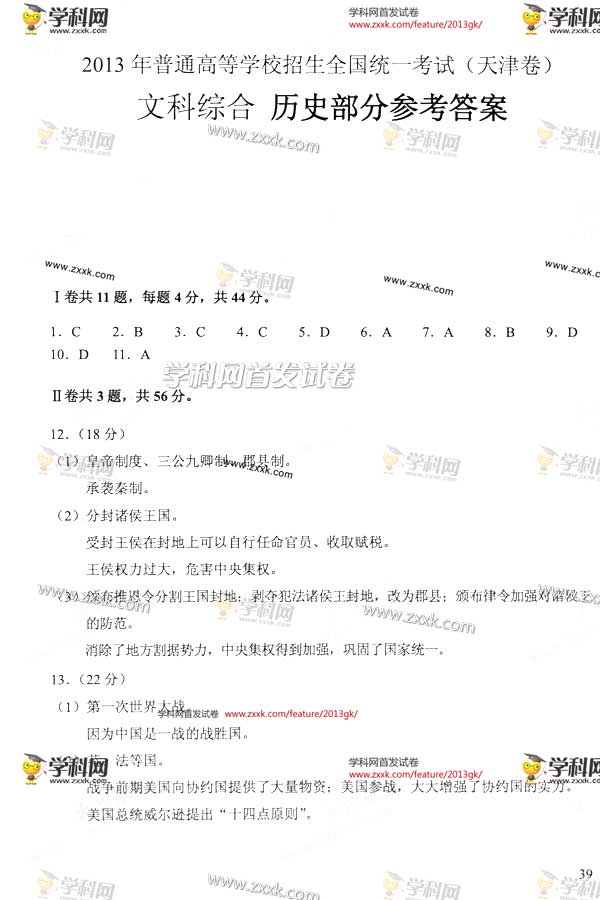 2013年天津文綜試題及答案搶先看圖片版(15)