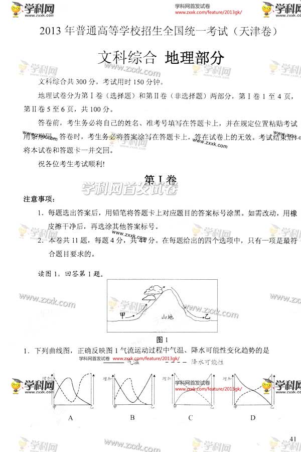 2013年天津文綜試題及答案搶先看圖片版(17)