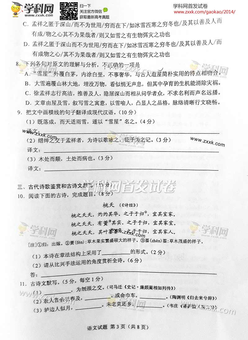 2014年湖南高考語(yǔ)文真題及答案(圖片版)(3)