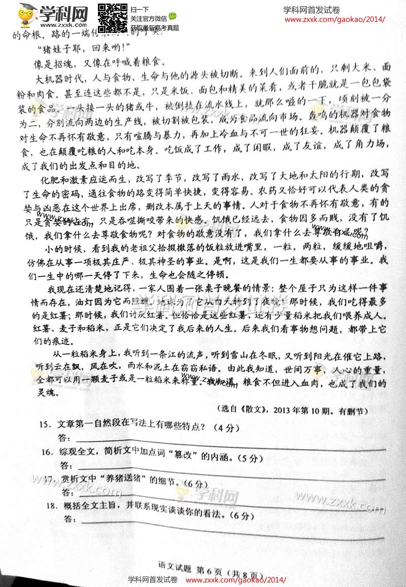 2014年湖南高考語(yǔ)文真題及答案(圖片版)(6)