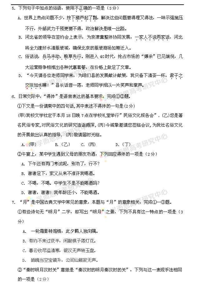 首發(fā)2014年北京高考語文真題及答案(清晰版)(2)