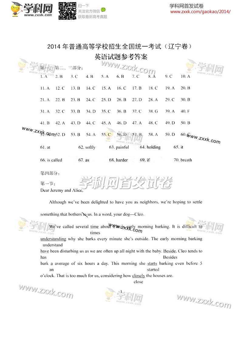 2014年遼寧高考英語(yǔ)真題及答案(圖片版)(12)