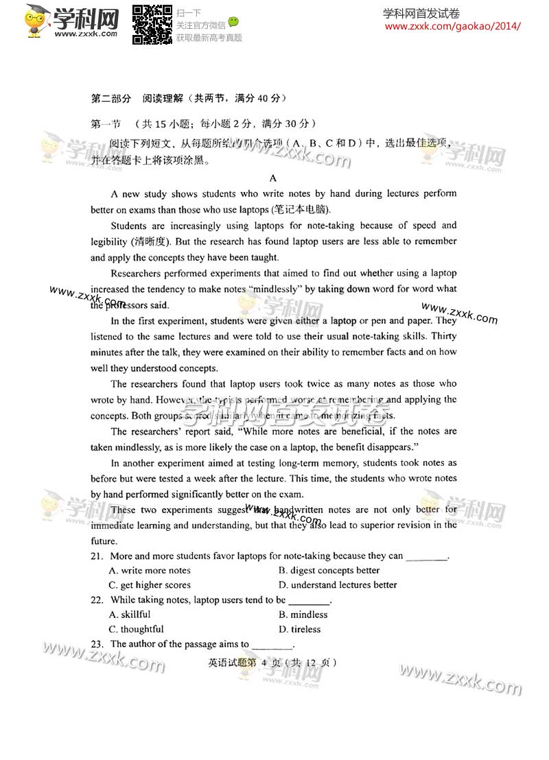 2014年遼寧高考英語真題及答案(圖片版)(3)