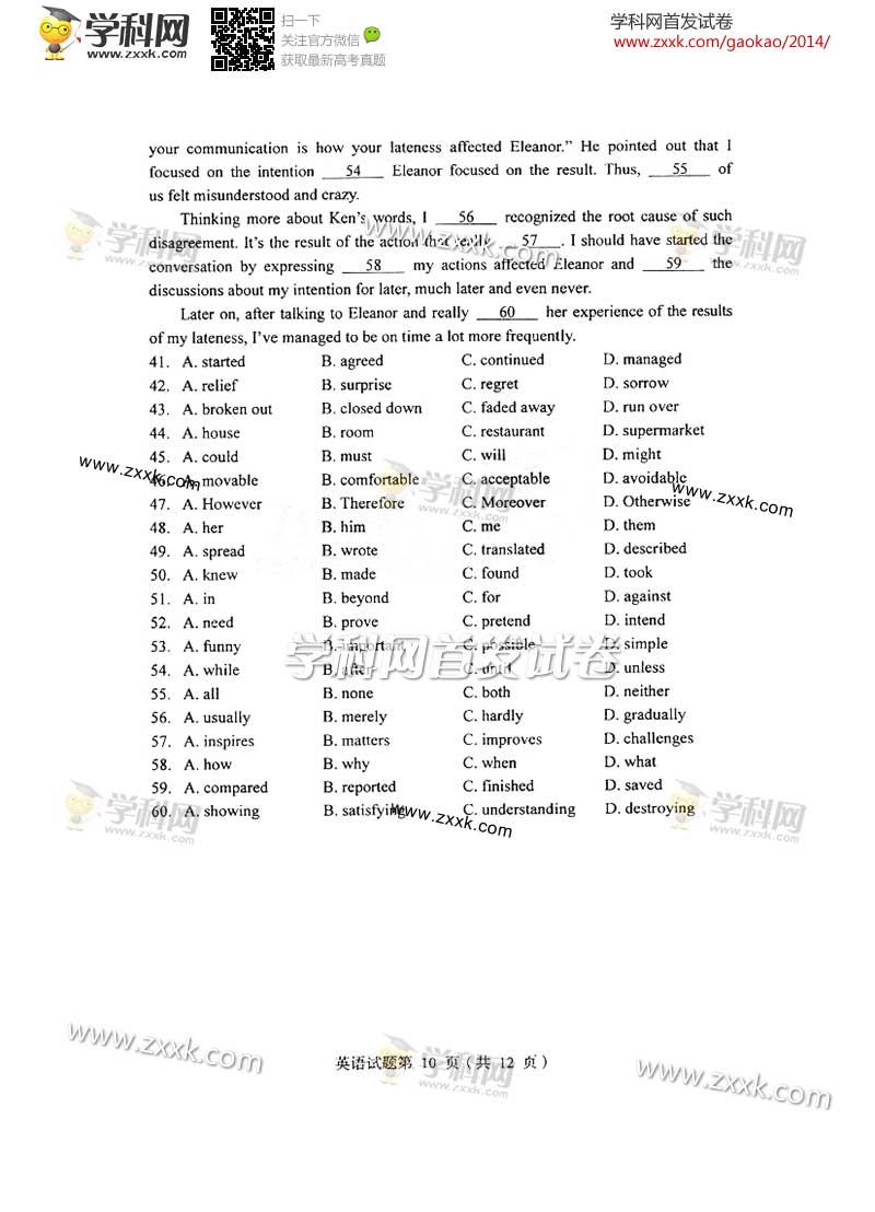 2014年遼寧高考英語(yǔ)真題及答案(圖片版)(9)