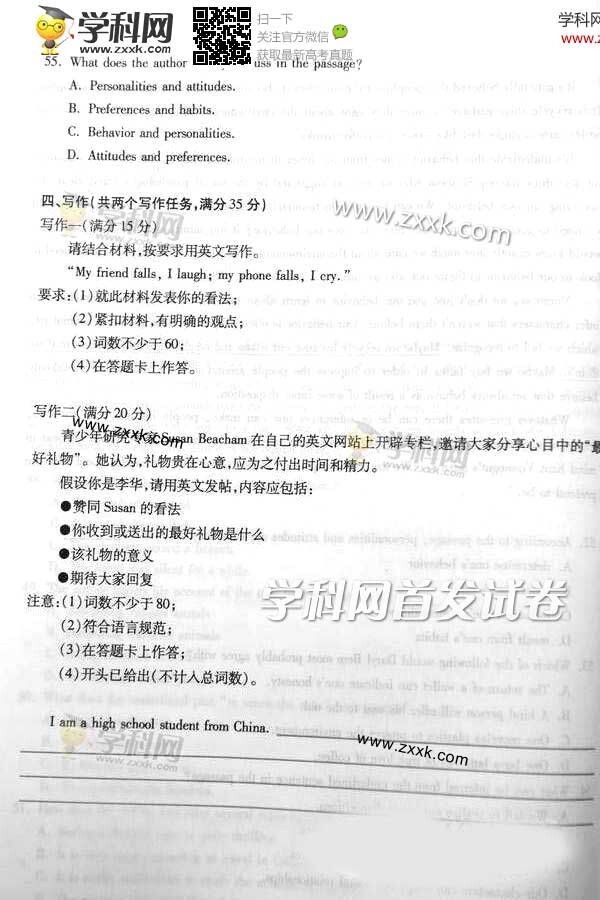 2014年重慶高考英語(yǔ)真題及答案(圖片版)(10)