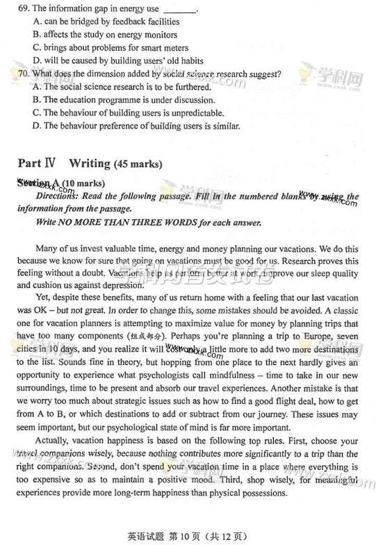 首發(fā)2014年湖南高考英語真題及答案(清晰版)(10)