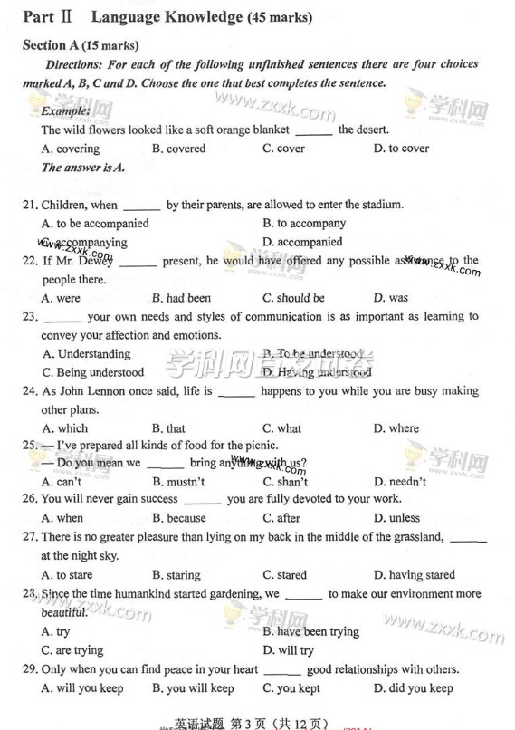首發(fā)2014年湖南高考英語真題及答案(清晰版)(3)