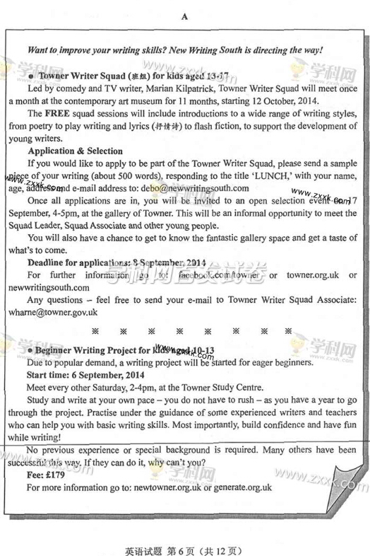 首發(fā)2014年湖南高考英語真題及答案(清晰版)(6)