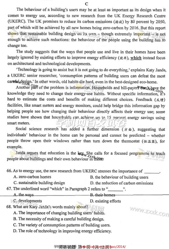 首發(fā)2014年湖南高考英語真題及答案(清晰版)(9)