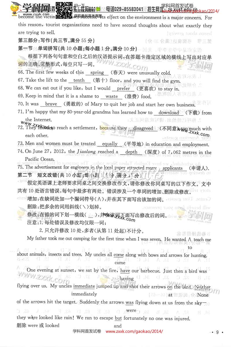 2014年陜西高考英語真題及答案(圖片版)(9)