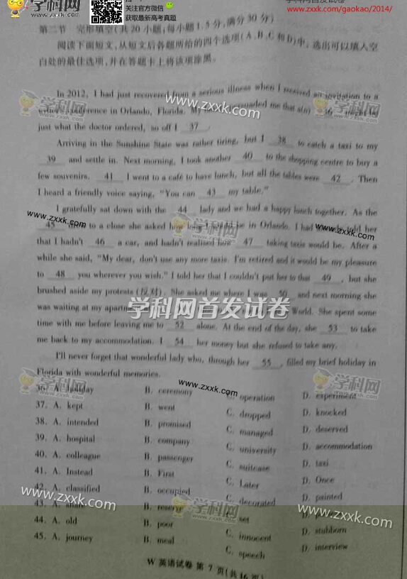 首發(fā)2014年安徽高考英語真題及答案(清晰版)(7)
