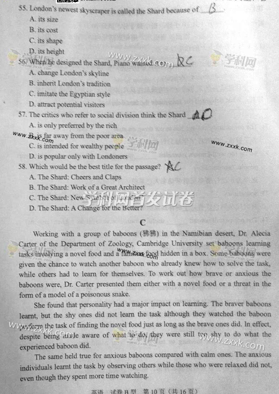 首發(fā)2014年湖北高考英語真題及答案(清晰版)(10)
