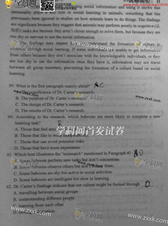 首發(fā)2014年湖北高考英語(yǔ)真題及答案(清晰版)(11)