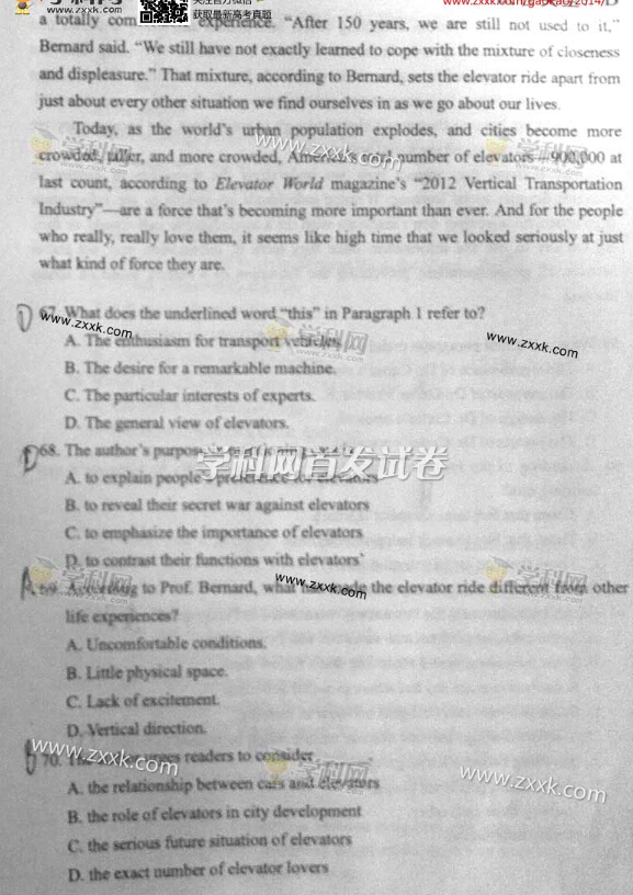 首發(fā)2014年湖北高考英語真題及答案(清晰版)(13)