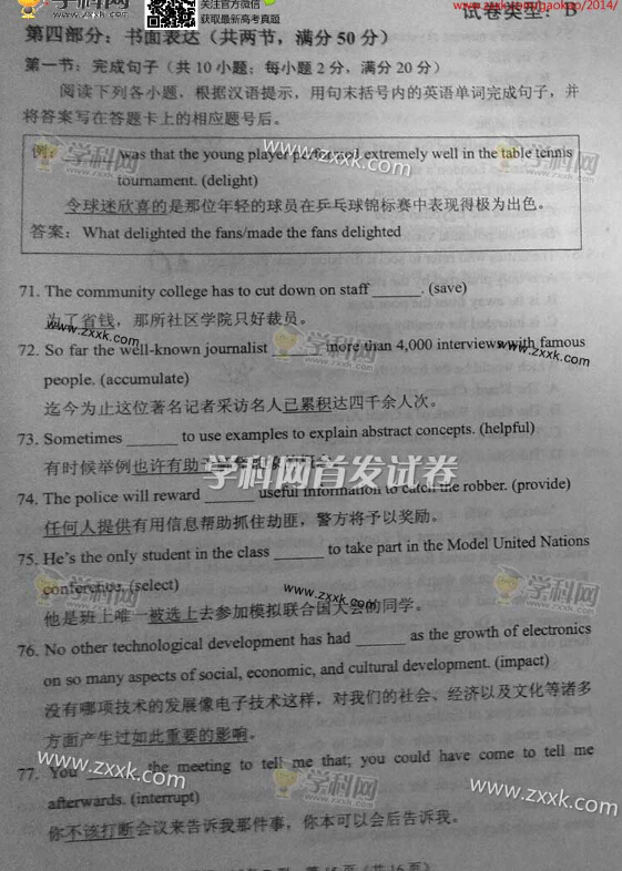 首發(fā)2014年湖北高考英語(yǔ)真題及答案(清晰版)(15)