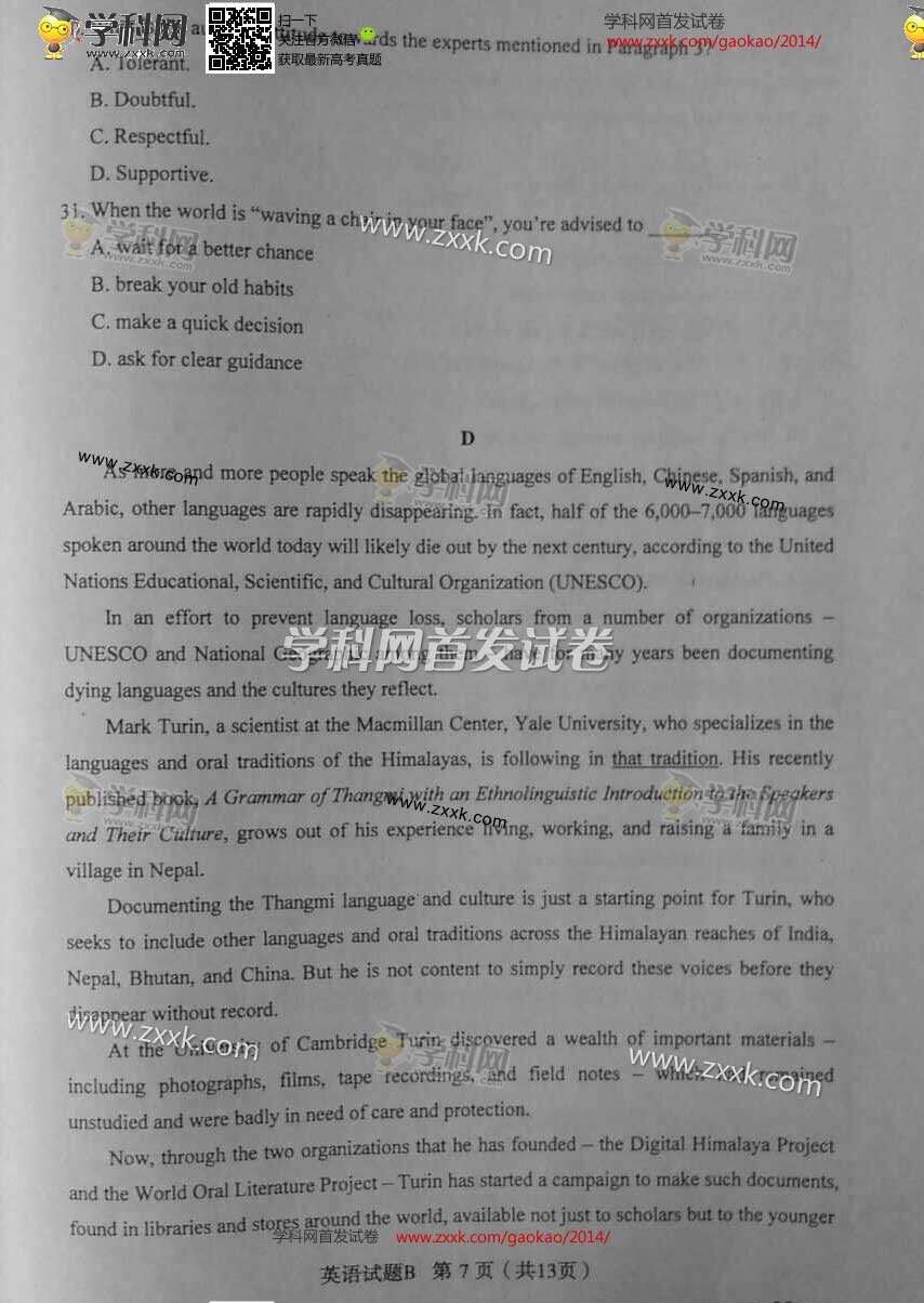 2014年河北高考英語真題及答案(圖片版)(7)