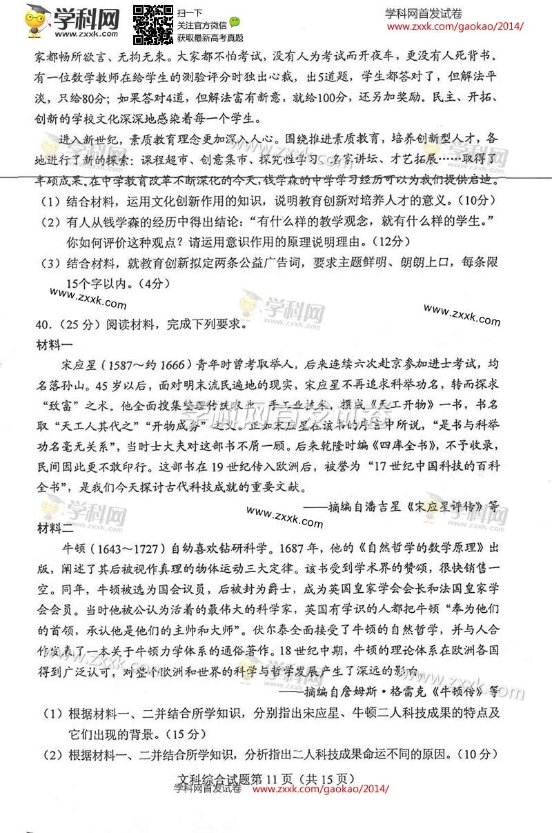 2014年河北高考新課標(biāo)全國卷Ⅰ文綜試題及答案(清晰版)(11)