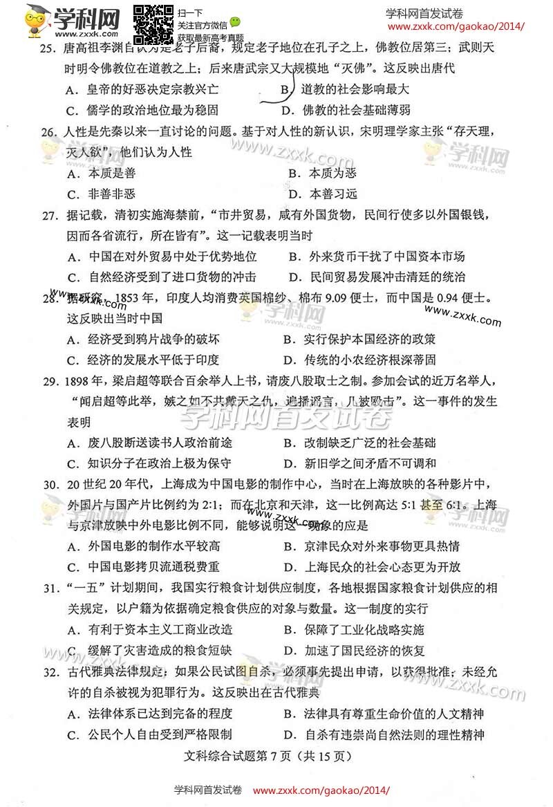 2014年河北高考新課標(biāo)全國卷Ⅰ文綜試題及答案(清晰版)(7)