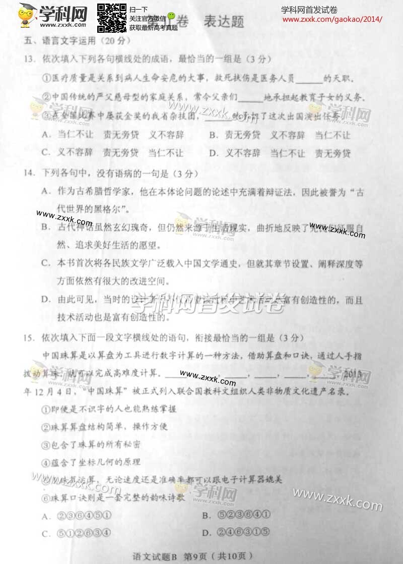 2014年山西高考語(yǔ)文真題及答案(圖片版)(9)