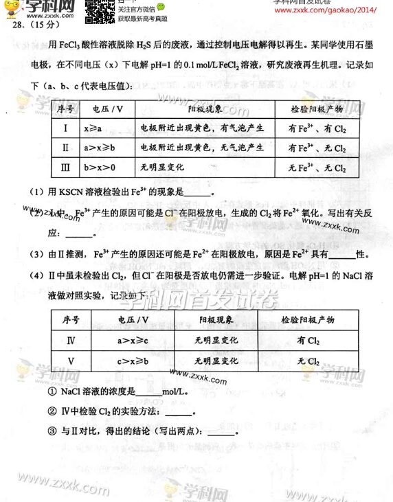2014年高考北京卷理科綜合試題及答案解析(清晰圖片版)(12)