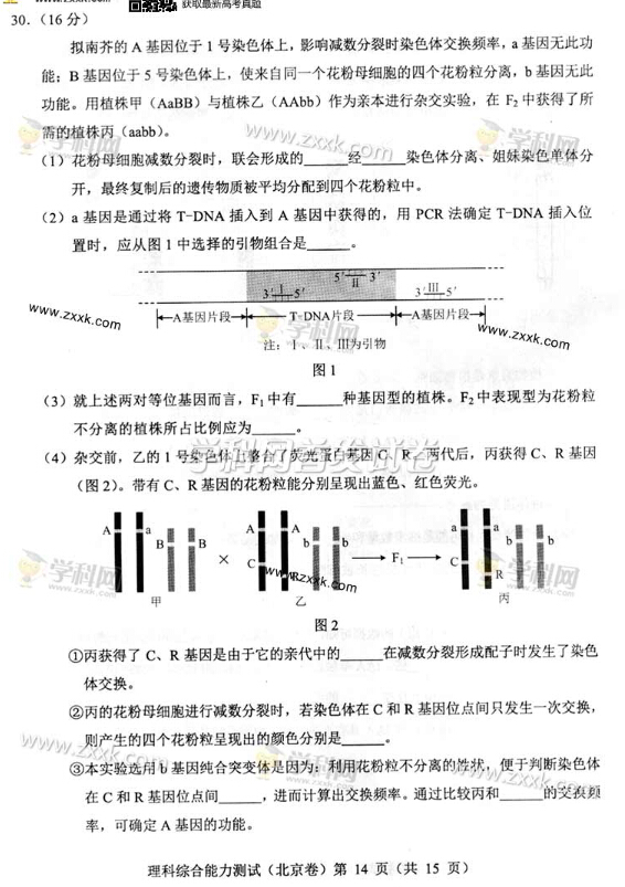 2014年高考北京卷理科綜合試題及答案解析(清晰圖片版)(14)