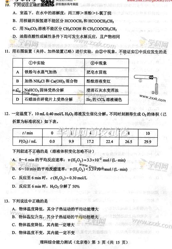 2014年高考北京卷理科綜合試題及答案解析(清晰圖片版)(3)