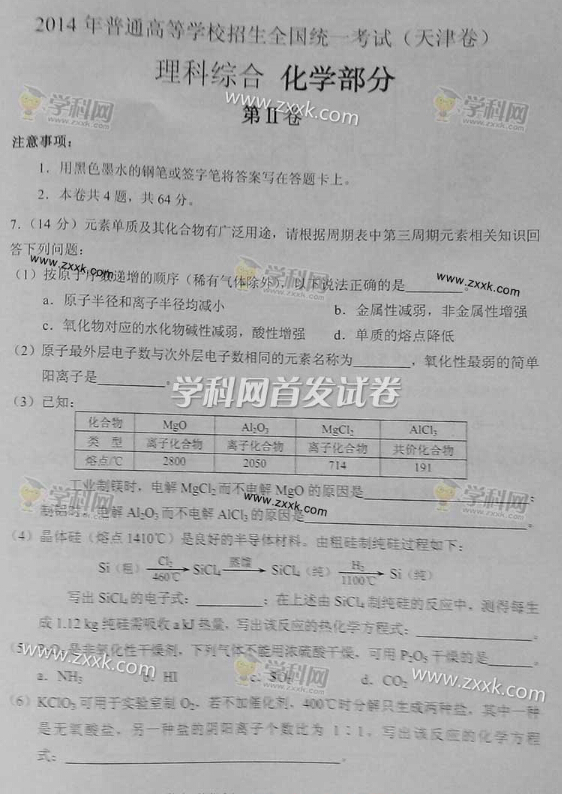 2014年高考天津理科綜合試題及答案解析(圖片高清版)(10)