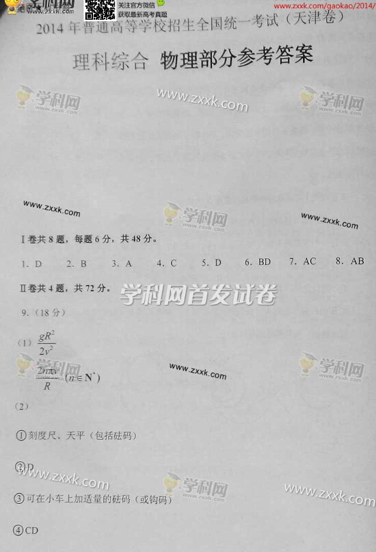 2014年高考天津理科綜合試題及答案解析(圖片高清版)(19)