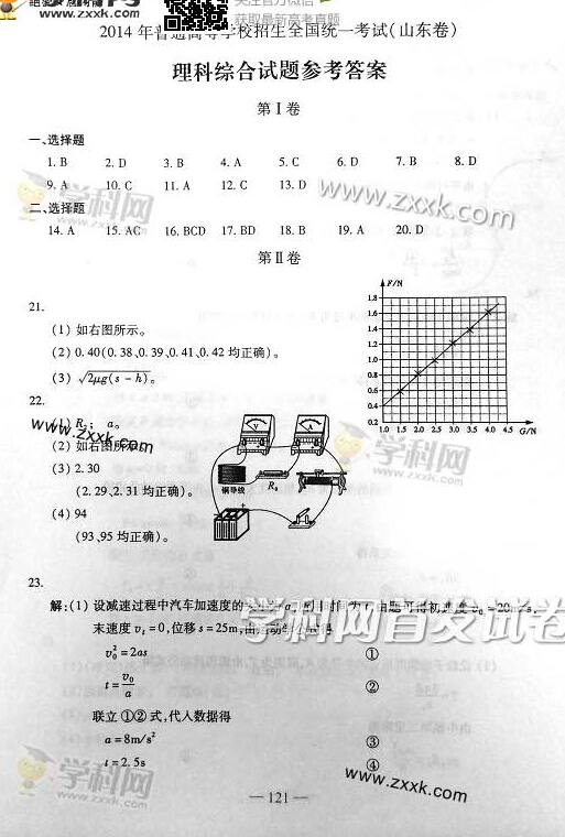 2014年高考山東理科綜合試題及答案(圖片有答案版)(13)