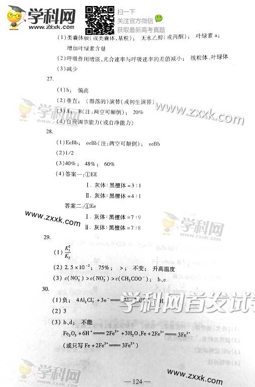 2014年高考山東理科綜合試題及答案(圖片有答案版)(16)