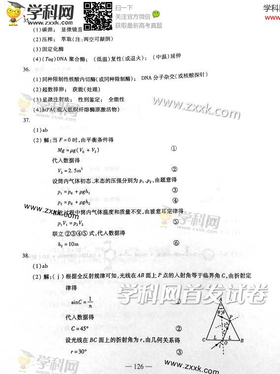2014年高考山東理科綜合試題及答案(圖片有答案版)(18)