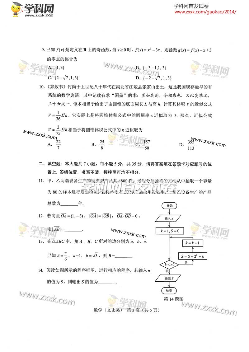 2014年湖北高考數(shù)學(xué)(文)真題及答案(圖文版)(3)