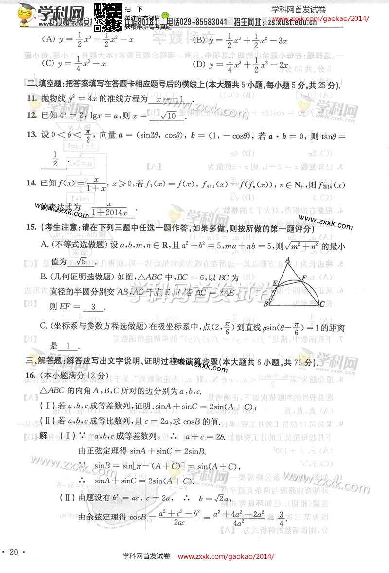 2014年陜西高考數(shù)學(xué)(文)真題及答案(圖文版)(2)