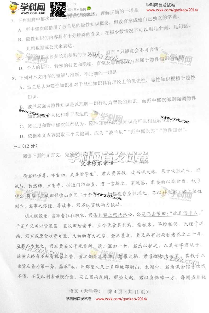 2014年天津高考語(yǔ)文試題(圖文版)(4)